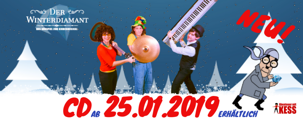 Abenteuer mit KESS präsentiert das neue Kindermusical „Der Winterdiamant“ auf CD. Ein Wintermärchen für Kindergartenkinder, Grundschüler und Familien. Nach der erfolgreichen Bühnenpremiere im November 2018 folgt nun die Veröffentlichung der Audio-CD mit dem Hörspiel „Der Winterdiamant“. Ab dem 25.01.2019 ist die CD in unserem Online-Shop und allen gängigen Online-Portalen als Tonträger, Stream oder Download erhältlich. Der […]